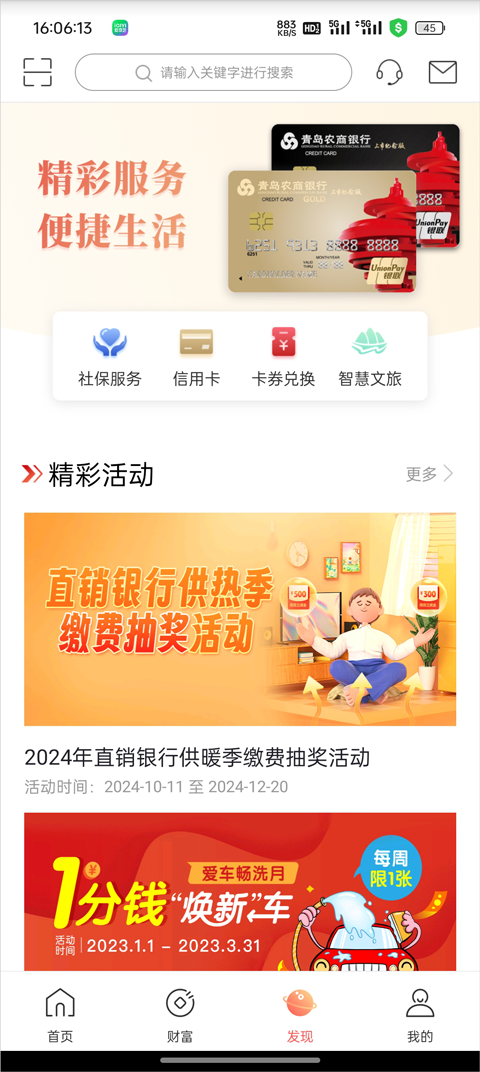 3、在发现页面汇聚了平台为大家提供了众多服务,如社保服务、信用卡服务、智慧文旅等功能