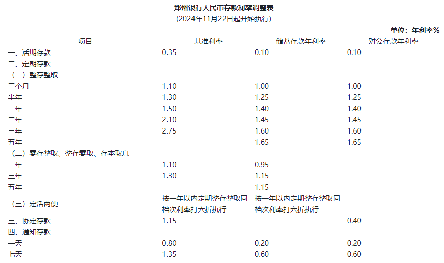 2025郑州银行存款利率表