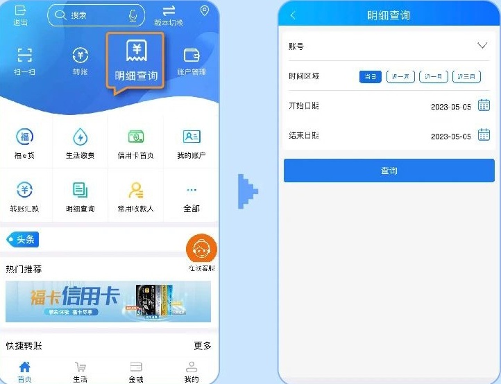 操作路径:手机银行APP首页-明细查询