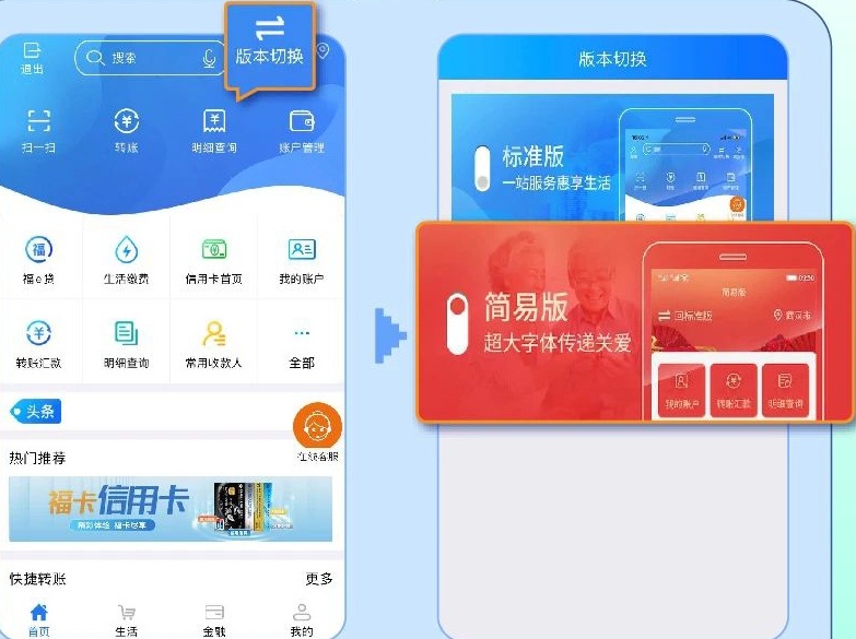操作路径:手机银行APP首页-版本切换