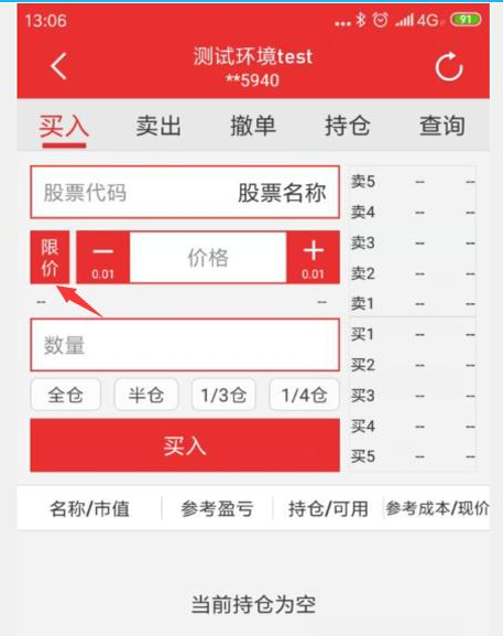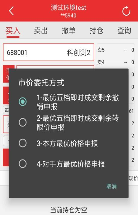 2、如果客户开通了市价委托权限,在限价栏选择对应的市价委托。