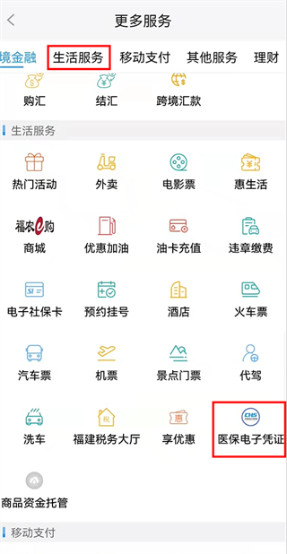 1、进入福建农村信用社app,点击“生活服务”板块,点击“医保电子凭证”