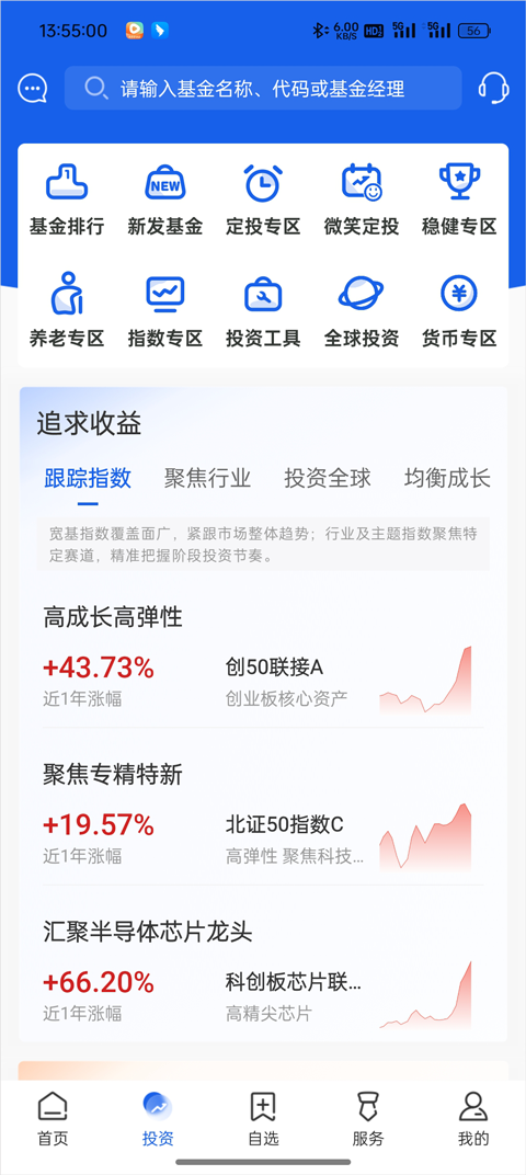 展示最新的基金净值、市场热点、收益排行与投资动态。