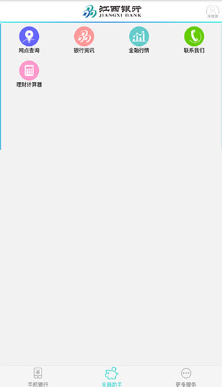 3、在金融助手板块中,您可以使用网点查询、银行贷款、金融行情、联系我们和理财计算器等服务工具;
