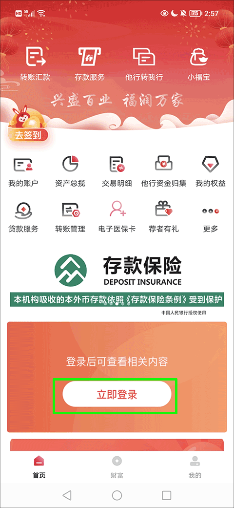 1、打开下载好的应用,在首页找到并点击“立即登录”的选项。