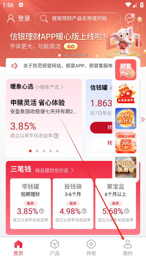 信银理财App怎么切换成暖心版