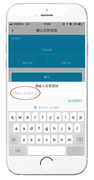 4、输入交易密码(与网银交易密码一致)