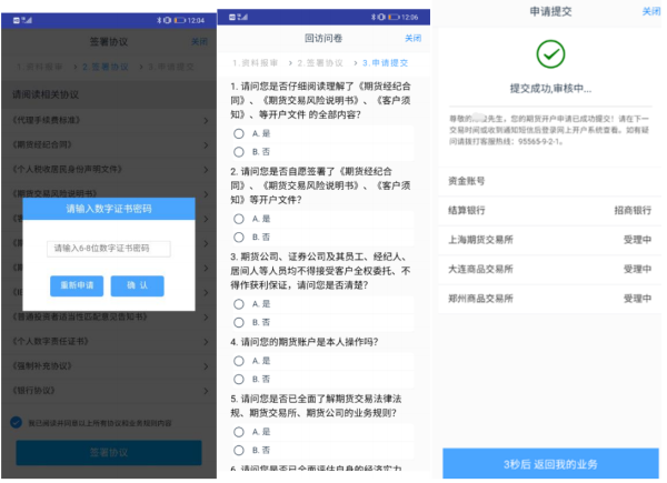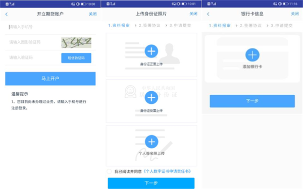 选择业务类型后,输入身份证号和手机验证码登录,准备身份证原件(开户还需银行卡原件),部分业务需与工作人员视频见证。业务提交后可在“我的业务”里查看办理进度。