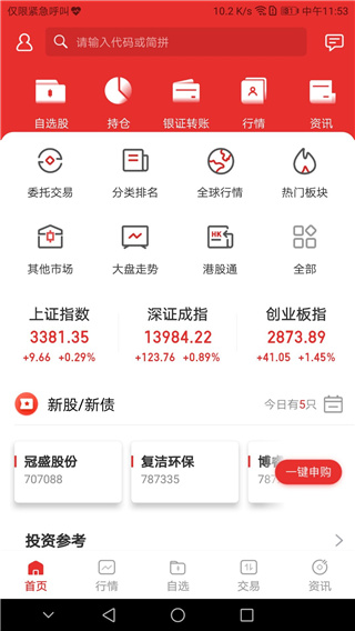 3、查看新股日历、行情数据、投资资讯等投资信息