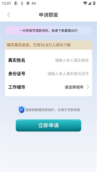 完成注册后,用户需要填写个人基本信息,包括姓名、身份证号、联系方式等。这些信息用于后续的信用评估。