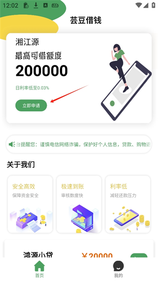 芸豆借钱是一款便捷的信用贷款APP。软件内提供最高20万元的无抵押借款,手机申请最快5分钟到账。支持3-12个月灵活分期,年化利率8%-24%,全程线上操作安全可靠,是您应急周转的贴心选择。