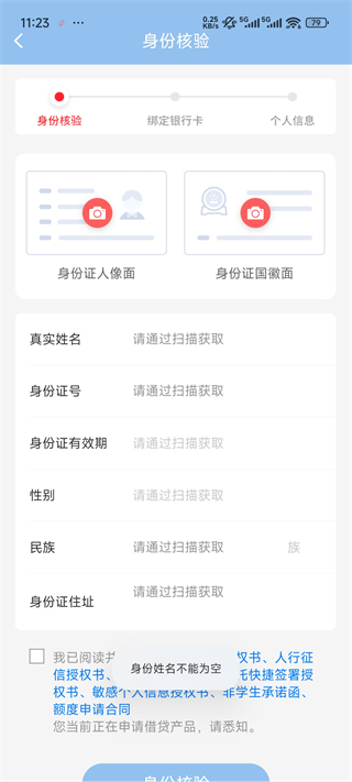 客户根据APP要求填写个人材料和身份确认,审批通过后给与客户相应的额度