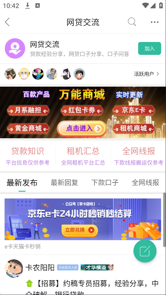 卡农app是一个拥有数百万用户的贷款交流平台,里面会每天推送相关的贷款资讯和热点问题,使得每个逾期的用户能知道该如何稳定心态轻松还款。软件内开设的论坛模式可以让许多志同道合的小伙伴一起商讨解决各种疑问。同时还可以在线学习贷款课程,让自己变得更加专业。卡农app还拥有中行、建行、工行、农行、招行、民生银行以及各种营销平台的相关资讯,有问题的小伙伴也可以随时发帖向广大网友们咨询,有需要的用户快来下载试试吧!