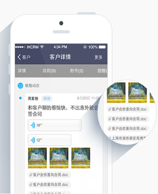 1、改变中小微企业销售管理模式移动端、PC端相结合,彻底改变工作方式,随时随地记录团队工作状态,精准到任一节点。