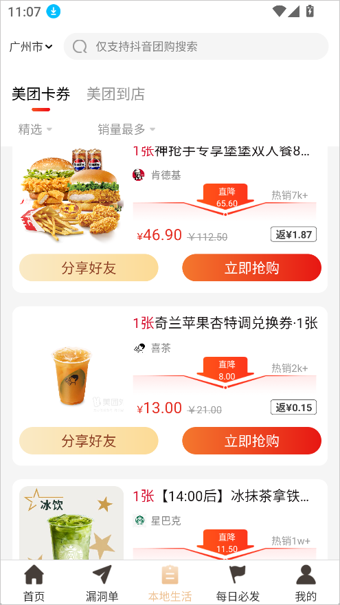 聚焦于用户身边的高频消费场景,包括外卖、餐饮、娱乐、加油、电影票等本地化服务优惠。