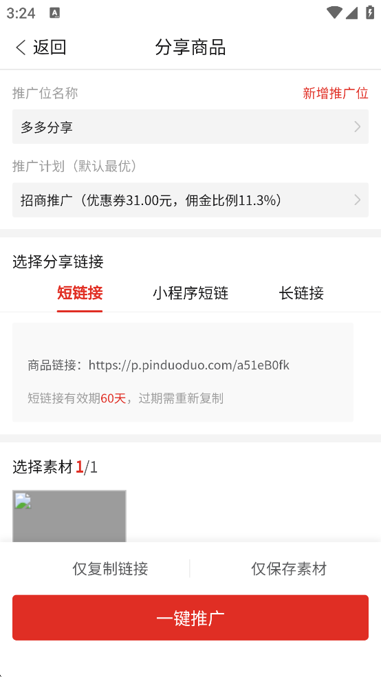 2、选择商品生成链接