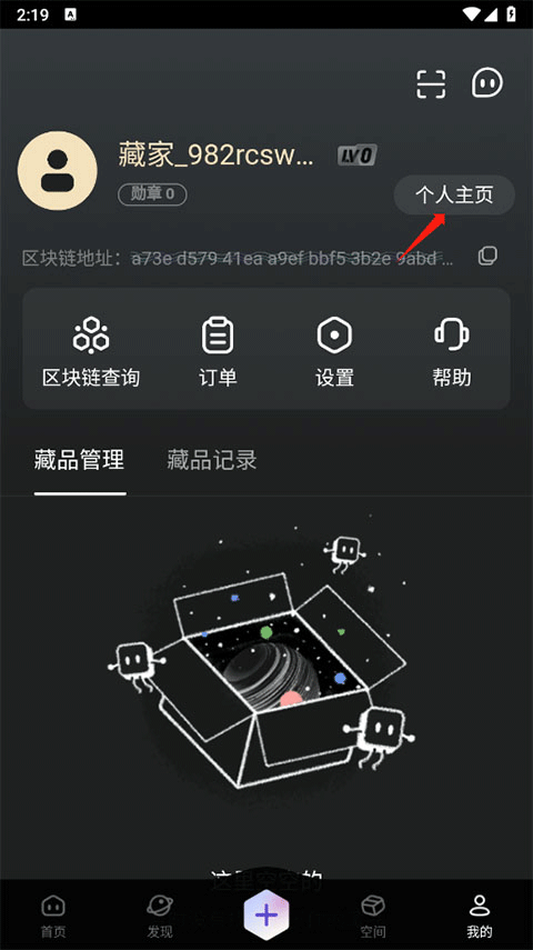 1、进入软件后,选择个人主页;