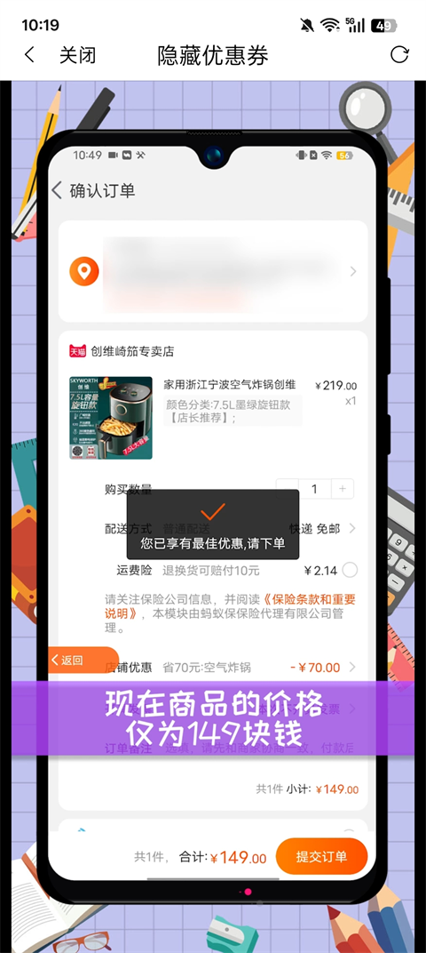 5、然后可以看到已经在原价的基础上使用了优惠券