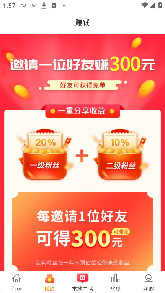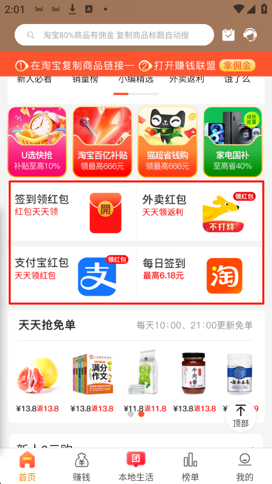3、除了邀请好友赚钱外,还可以领取其他登录红包