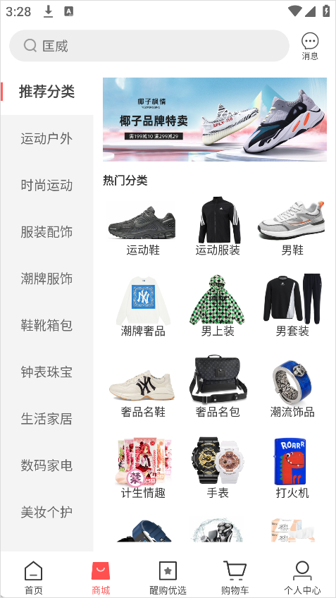 涵盖运动户外、服饰配饰、美妆个护、数码家电、母婴童装、生活家居、食品超市等九大板块。用户可以通过品牌、价格、销量等维度筛选商品,也能直接进入专属品牌馆参与优惠活动。