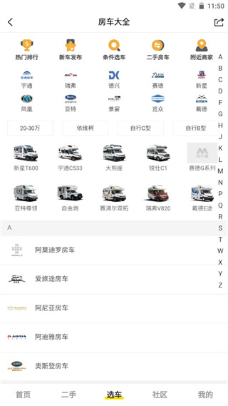 4、专业的房车权威信息,每一款车型都可以在这里搜索到.