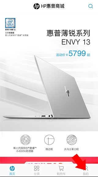 1、下载并打开HP惠普商城app,点击右下角【我的】