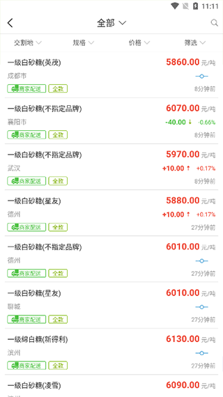 2、进入采购页面,会显示各地区的供应商和价钱