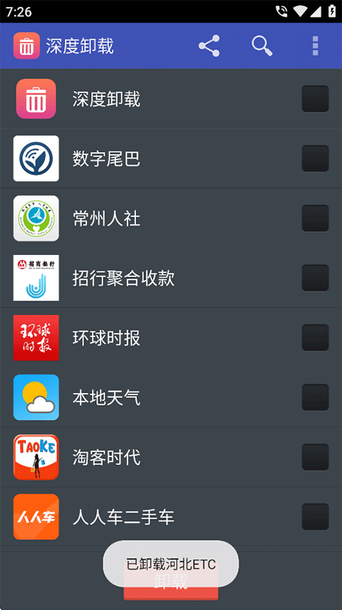 1、打开深度卸载软件手机版,进入后选择您需要进行卸载的应用,接着点击下方的卸载;