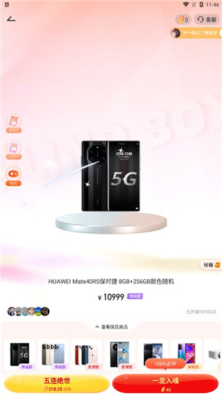 2、点击五连绝世、一发入魂抽取盲盒。