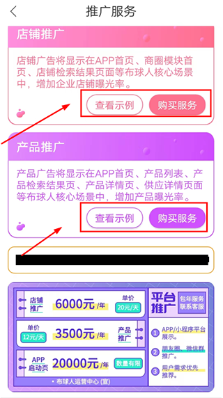 3、跳转至【推广服务】详情页面,进行购买,如若不清楚业务内容,可点击【查看示例】进行了解