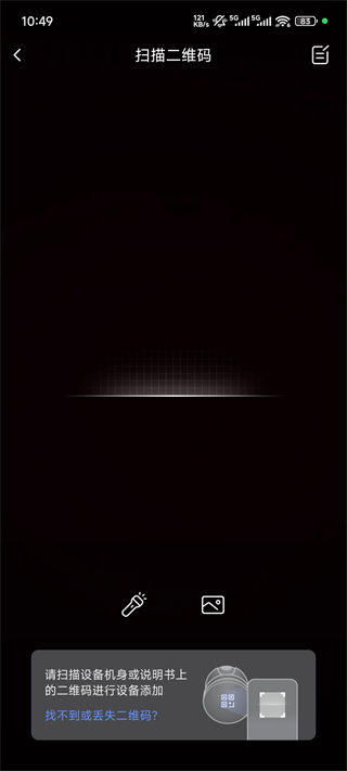 4、请扫描设备机身的二维码或说明书上的二维码进行设备添加