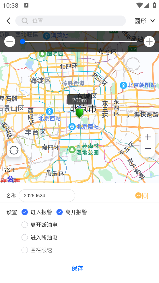 4、用户还可以设置您需要的围栏范围,然后点击保存。