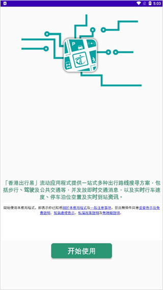 1、打开香港出行易App,点击开始使用即可进入;