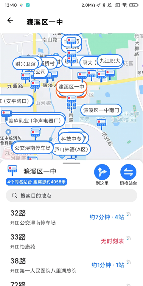 1、打开易公交APP,定位到您所在的城市,接着点击上方搜索栏搜索相关路线、站点或目的地;