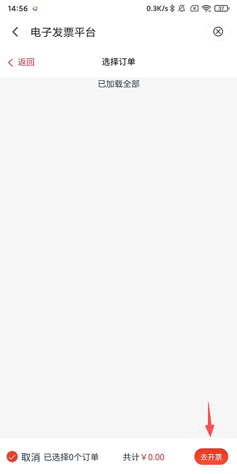 4、选择需要开具发票的订单,点击去开票;