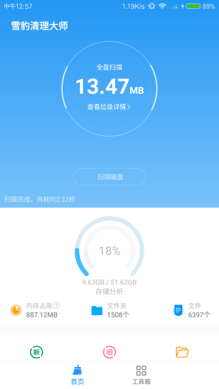 雪豹速清(原名雪豹清理大师)是一款能让清理更加简单便捷的手机内存优化、垃圾清理的工具。它可以让手机远离冗余垃圾文件,其操作更强大,轻轻松松做到全盘自动扫描,包括空文件夹、大文件、冗余文件、新文件、安装包、图片、视频、音频、文档、压缩包等几乎所有类型的文件都能扫描到,并自动归类展示在手机用户面前。