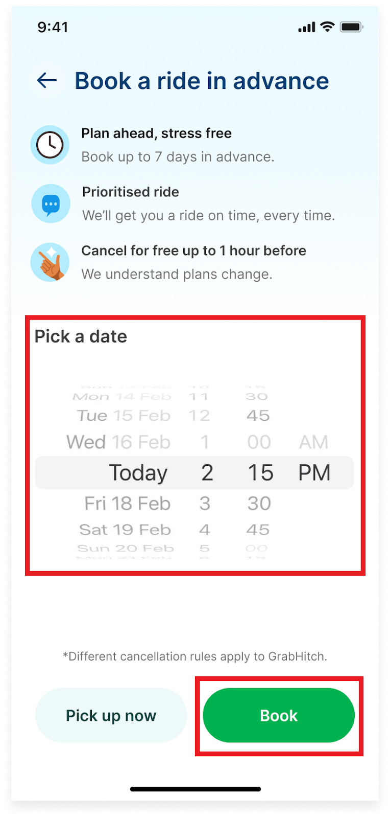 提前预订允许您提前 2 小时到 7 天安排 Grab 乘车服务,让您安心旅行。