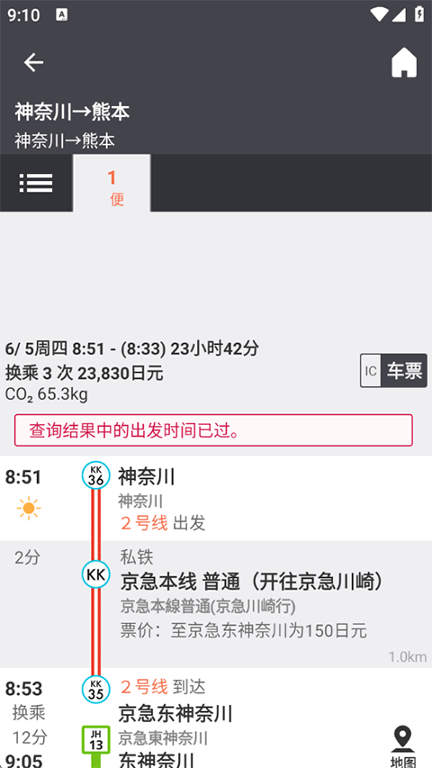 2、票价参考:日本地铁起步价约240日元,巴士230日元,软件会显示总费用。