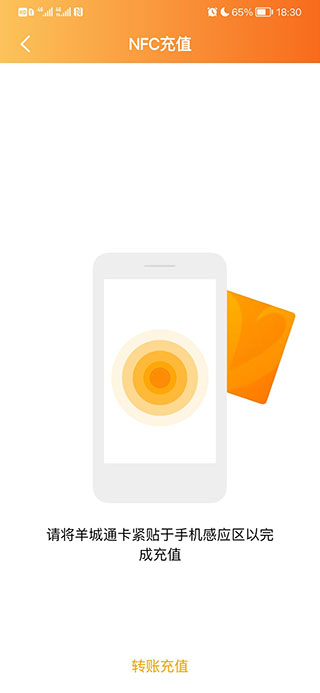 4、点击进入后,打开NFC开关,将羊城通卡紧贴于手机感应区。