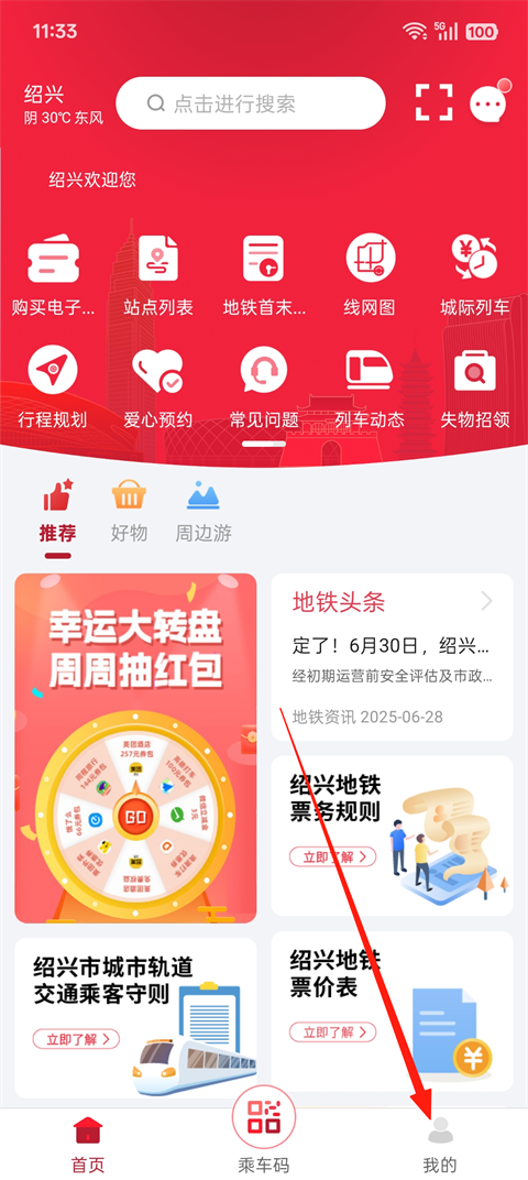 1、打开绍兴地铁APP,登录之后,点击【我的】