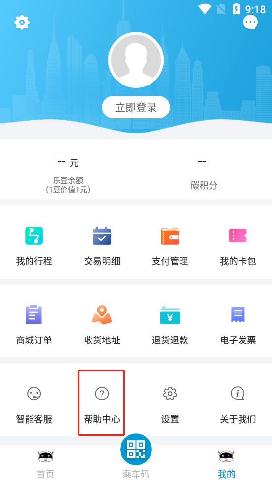 进入我的界面,点击【帮助中心】。