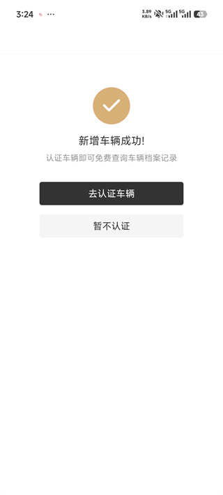 4、添加成功后去认证车辆【认证车辆即可免费查询车辆档案记录】