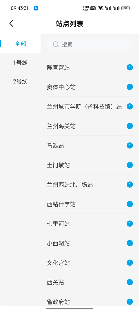 2、登录完成后,点击站点信息,可查看兰州地铁的路线图,通过这个大家可以规划好自己的出行。
