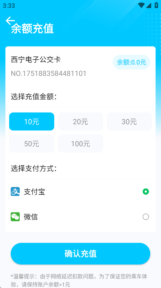 提供实体公交卡充值、余额查询、挂失、网点查询等服务,为您节约线下排队充值的时间,即充即用,马上出发