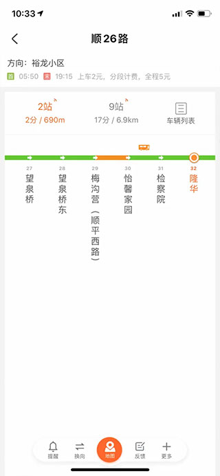 2、点击相关的公交车之后,就可以看到公交班次和地点