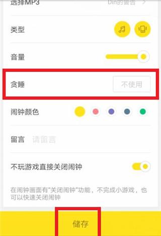3、颜色自选,对于贪睡字样就是起到延缓的效能,根据您所相宜的来使用,之后按底栏‘储存’。