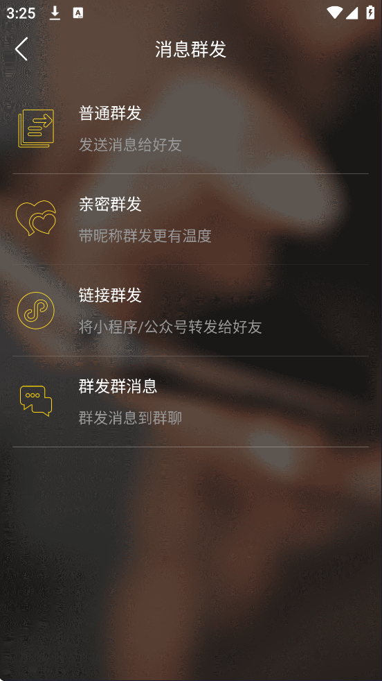 一键群发:广告、笑话、节日祝福、心灵鸡汤,一对一群发,一个也不能少,一键发所有,无任何限制。