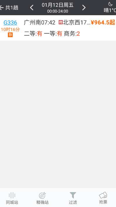 2、点击余票,可以详细的看到每趟列车的余票情况。