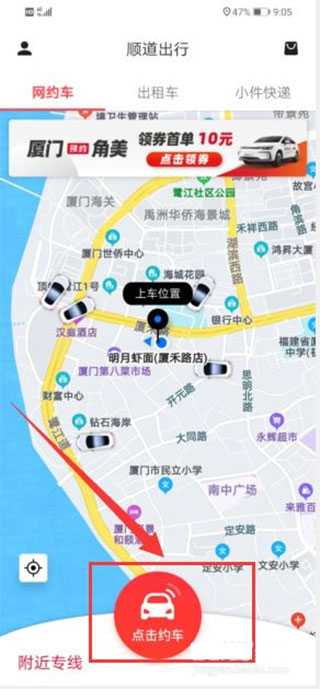 1、下载并打开软件。2、点击下方“点击约车”按钮。
