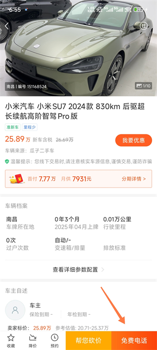 3、搜索成功后,点击询问底价或者点击二手车去购买